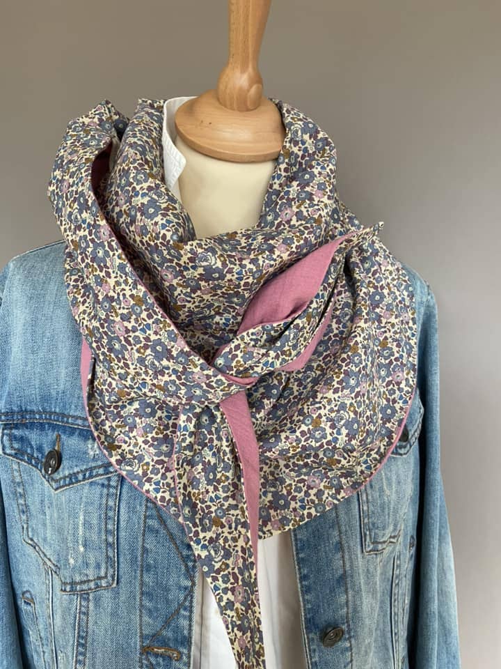 Le chèche en Liberty est un intemporel, il est idéal porté tant avec une robe qu'avec un pantalon.