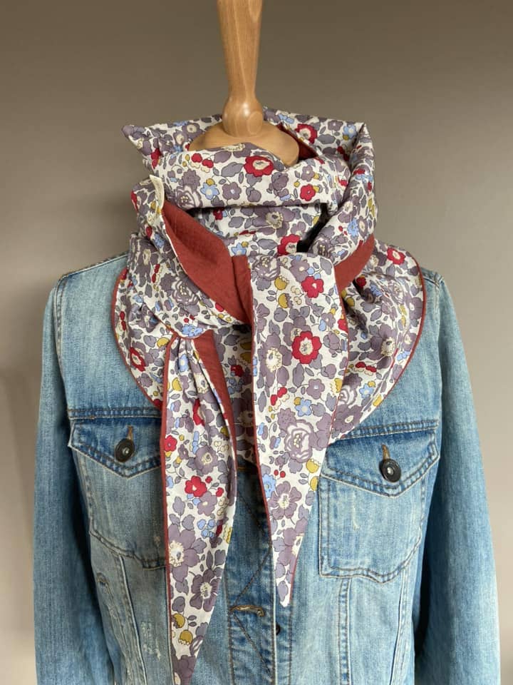 Ce modèle est en liberty "Betsy Pierre de Lune", la doublure en double gaze brique.