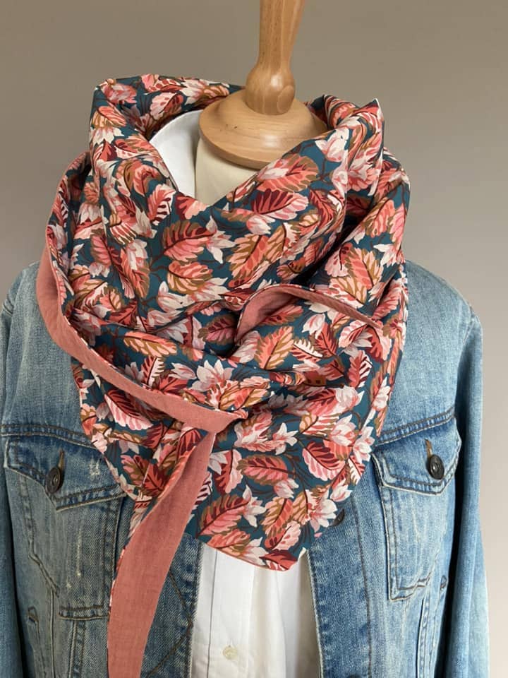 Le chèche en Liberty est un intemporel, il est idéal porté tant avec une robe qu'avec un pantalon.