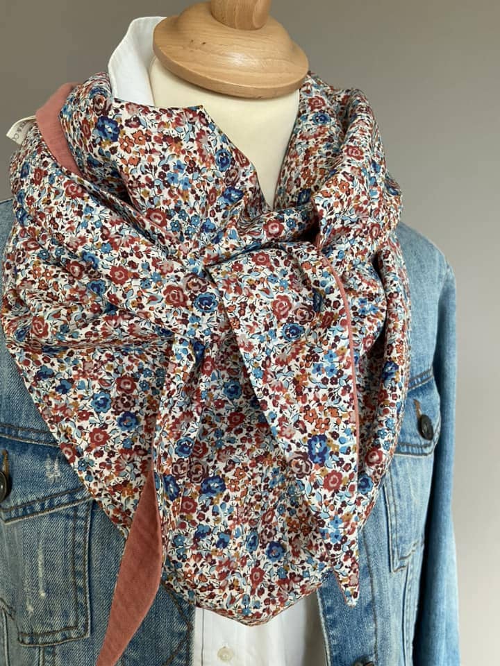 Le chèche en Liberty est un intemporel, il est idéal porté tant avec une robe qu'avec un pantalon.