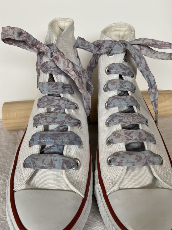 Offrez un nouveau souffle à vos chaussures grâce à nos lacets en tissu Liberty gris– longueur 140 cm. Fabriqués à la main en France avec du véritable tissu Liberty of London, ces lacets allient élégance intemporelle, originalité et finition artisanale.