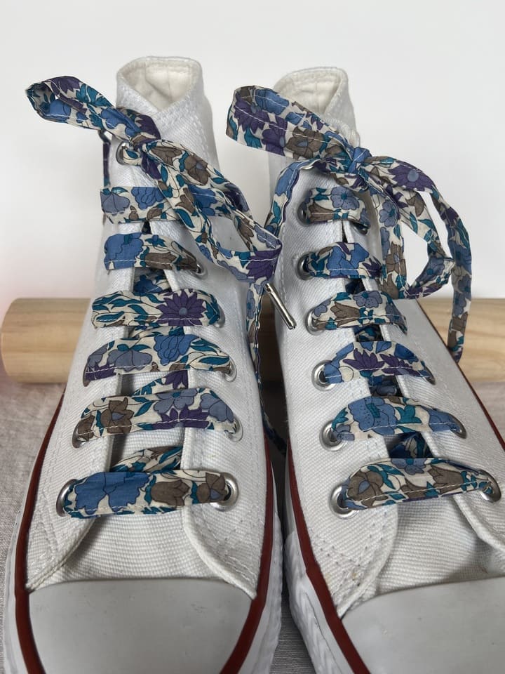 Offrez un nouveau souffle à vos chaussures grâce à nos lacets en tissu Liberty Poppy and Daisy Bleu Prune – longueur 140 cm. Fabriqués à la main en France avec du véritable tissu Liberty of London, ces lacets allient élégance intemporelle, originalité et finition artisanale.