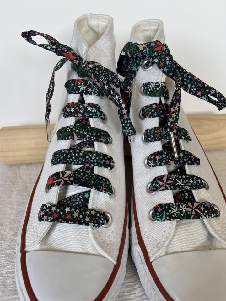 Offrez un nouveau souffle à vos chaussures grâce à nos lacets en tissu Liberty Vert Bouteille – longueur 140 cm. Fabriqués à la main en France avec du véritable tissu Liberty of London, ces lacets allient élégance intemporelle, originalité et finition artisanale.