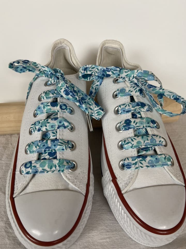 Offrez un nouveau souffle à vos chaussures grâce à nos lacets en tissu Liberty Wiltshire Blue Crystal – longueur 120 cm. Fabriqués à la main en France avec du véritable tissu Liberty of London, ces lacets allient élégance intemporelle, originalité et finition artisanale.