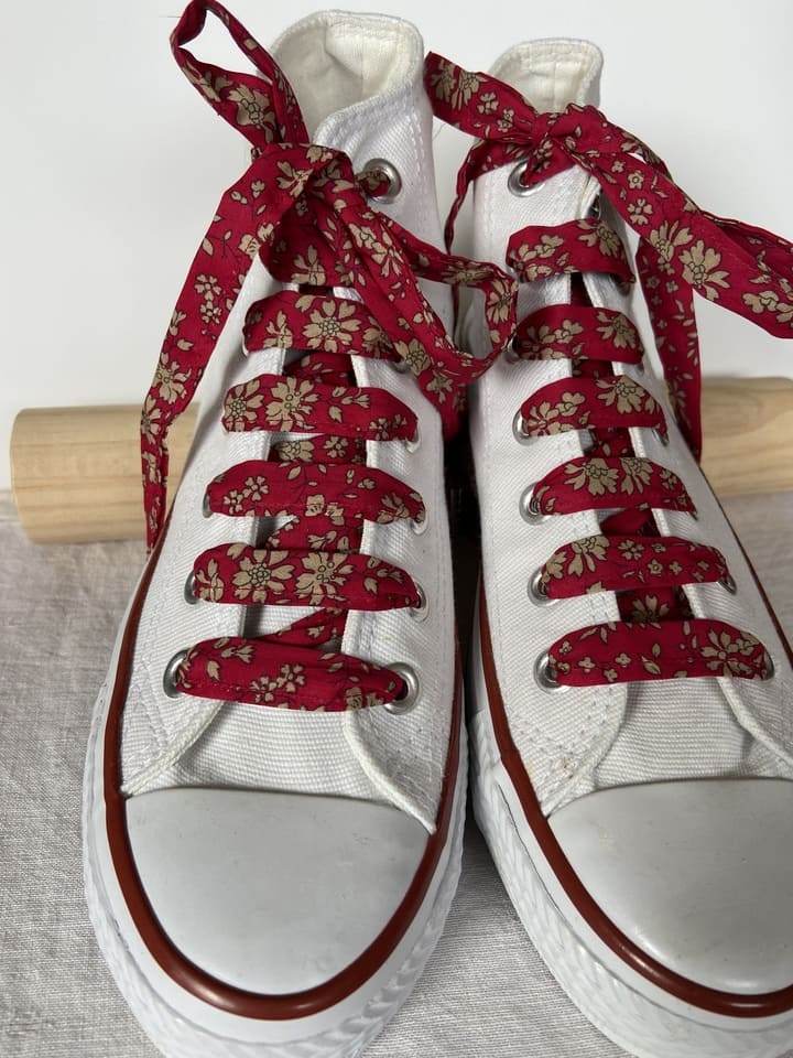 Offrez un nouveau souffle à vos chaussures grâce à nos lacets en tissu Liberty Capel Rubis Bordeaux – longueur 140 cm. Fabriqués à la main en France avec du véritable tissu Liberty of London, ces lacets allient élégance intemporelle, originalité et finition artisanale.