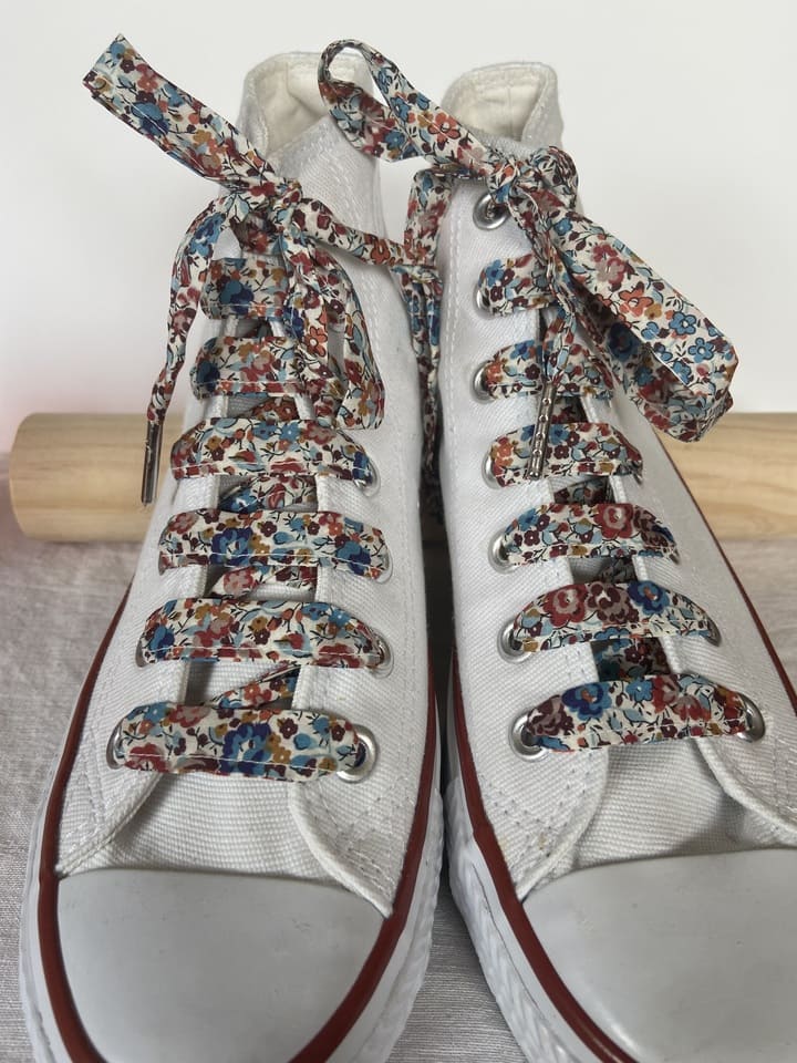 Offrez un nouveau souffle à vos chaussures grâce à nos lacets en tissu Liberty Emma & Georgina Rouille – longueur 140 cm. Fabriqués à la main en France avec du véritable tissu Liberty of London, ces lacets allient élégance intemporelle, originalité et finition artisanale.