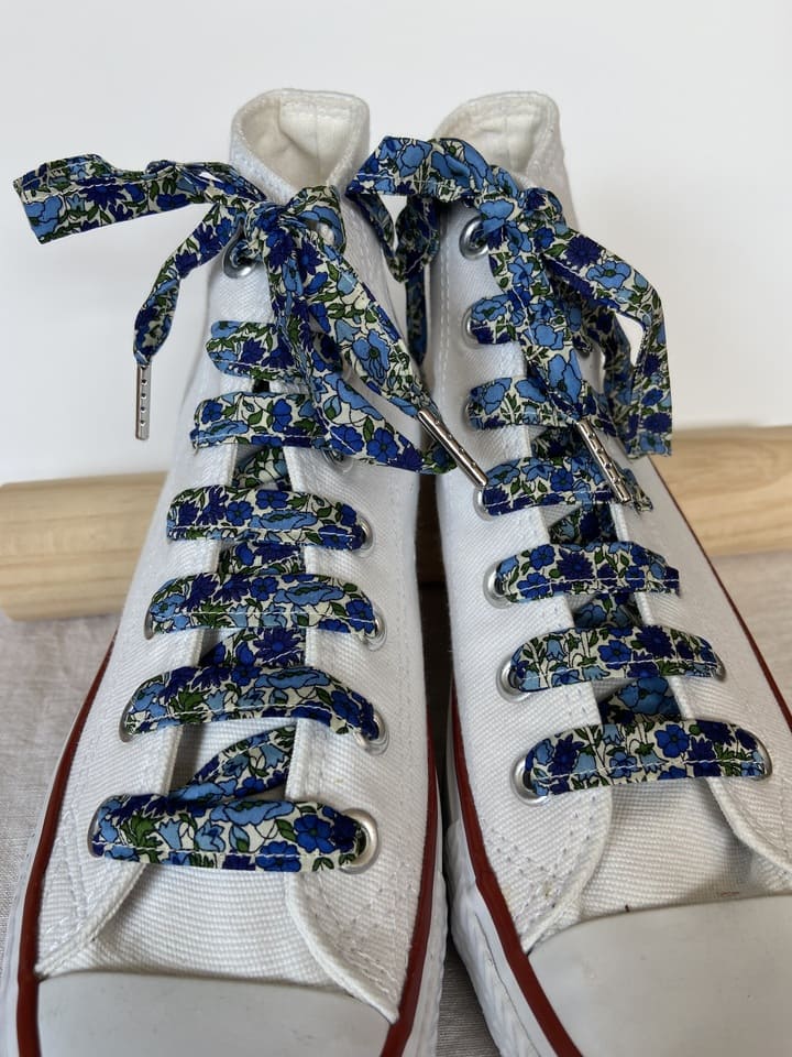 Lacets en liberty Petal and Buds Bleu pour chaussures montantes