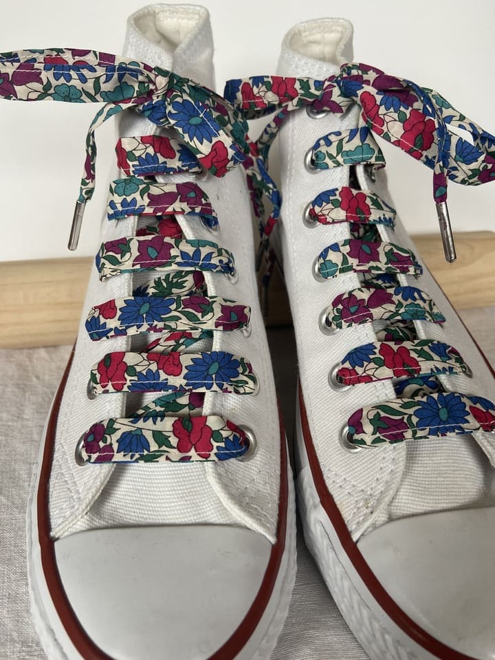 Offrez un nouveau souffle à vos chaussures grâce à nos lacets en tissu Liberty Poppy and Daisy Canard – longueur 140 cm. Fabriqués à la main en France avec du véritable tissu Liberty of London, ces lacets allient élégance intemporelle, originalité et finition artisanale.