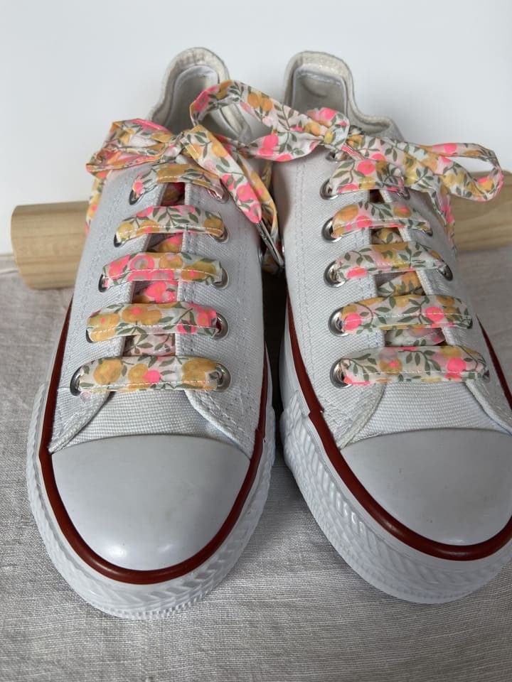 Offrez un nouveau souffle à vos chaussures grâce à nos lacets en tissu Liberty Wiltshire Lemon Curd – longueur 120 cm. Fabriqués à la main en France avec du véritable tissu Liberty of London, ces lacets allient élégance intemporelle, originalité et finition artisanale.