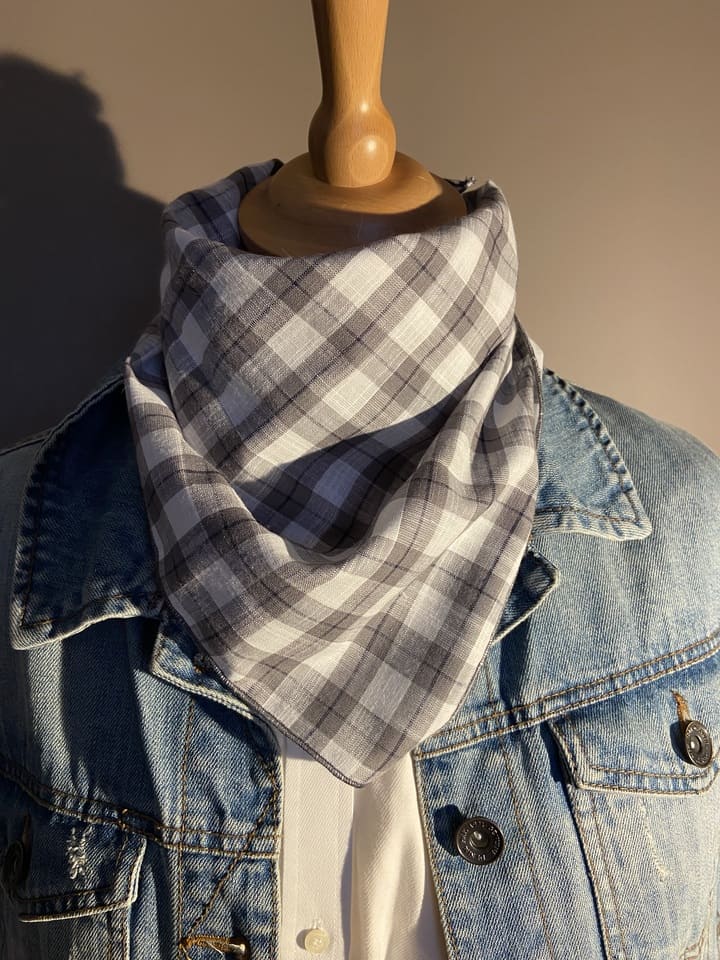 Foulard Bandana Coton écossais gris-blanc
