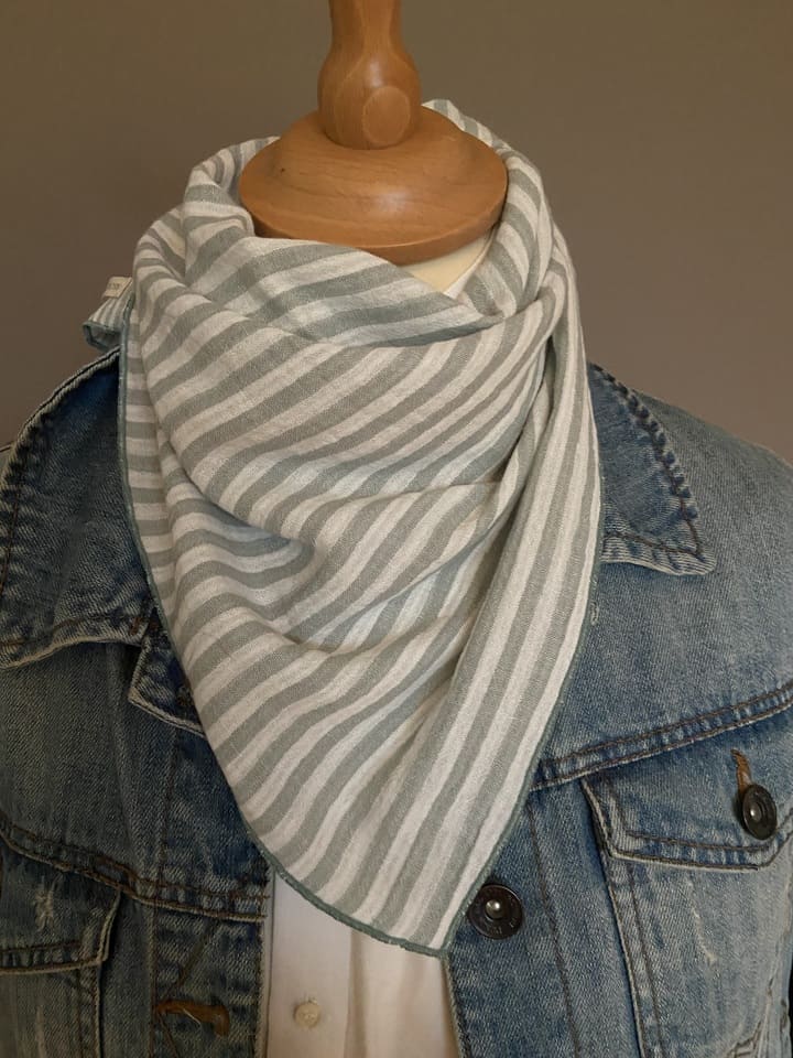 Foulard Bandana Double Gaze double face rayures vert celadon