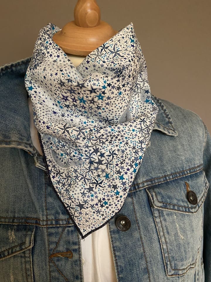 Ce joli foulard aux dimensions "bandana" 50x50 est en liberty.