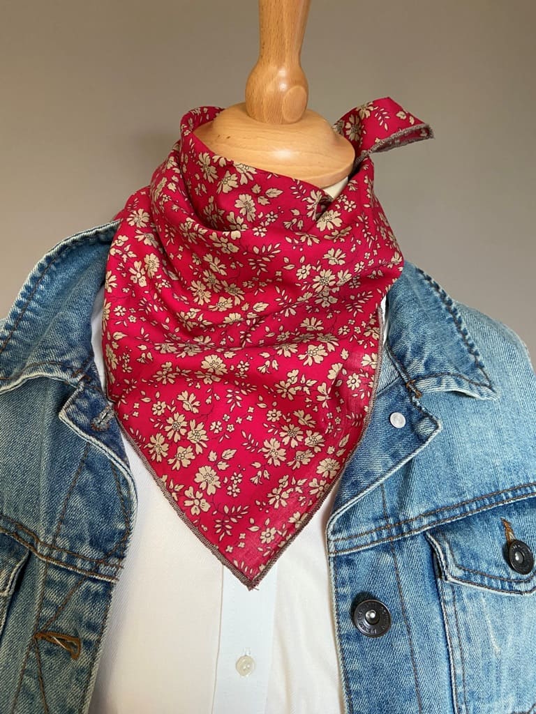 Ce joli foulard aux dimensions "bandana" 50x50 est en liberty.