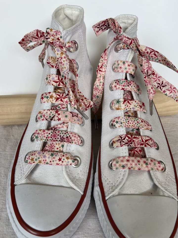 Offrez un nouveau souffle à vos chaussures grâce à nos lacets en tissu Liberty Cerise – longueur 140 cm. Fabriqués à la main en France avec du véritable tissu Liberty of London, ces lacets allient élégance intemporelle, originalité et finition artisanale.