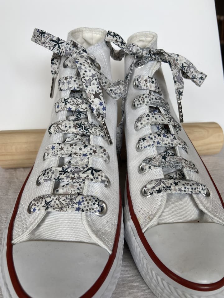 Offrez un nouveau souffle à vos chaussures grâce à nos lacets en tissu Liberty Adelajda Gris Acier – longueur 140 cm. Fabriqués à la main en France avec du véritable tissu Liberty of London, ces lacets allient élégance intemporelle, originalité et finition artisanale.