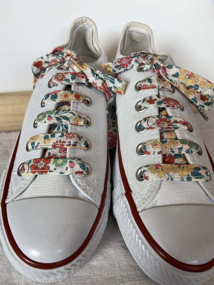 Offrez un nouveau souffle à vos chaussures grâce à nos lacets en tissu Liberty Annabella – longueur 120 cm. Fabriqués à la main en France avec du véritable tissu Liberty of London, ces lacets allient élégance intemporelle, originalité et finition artisanale.