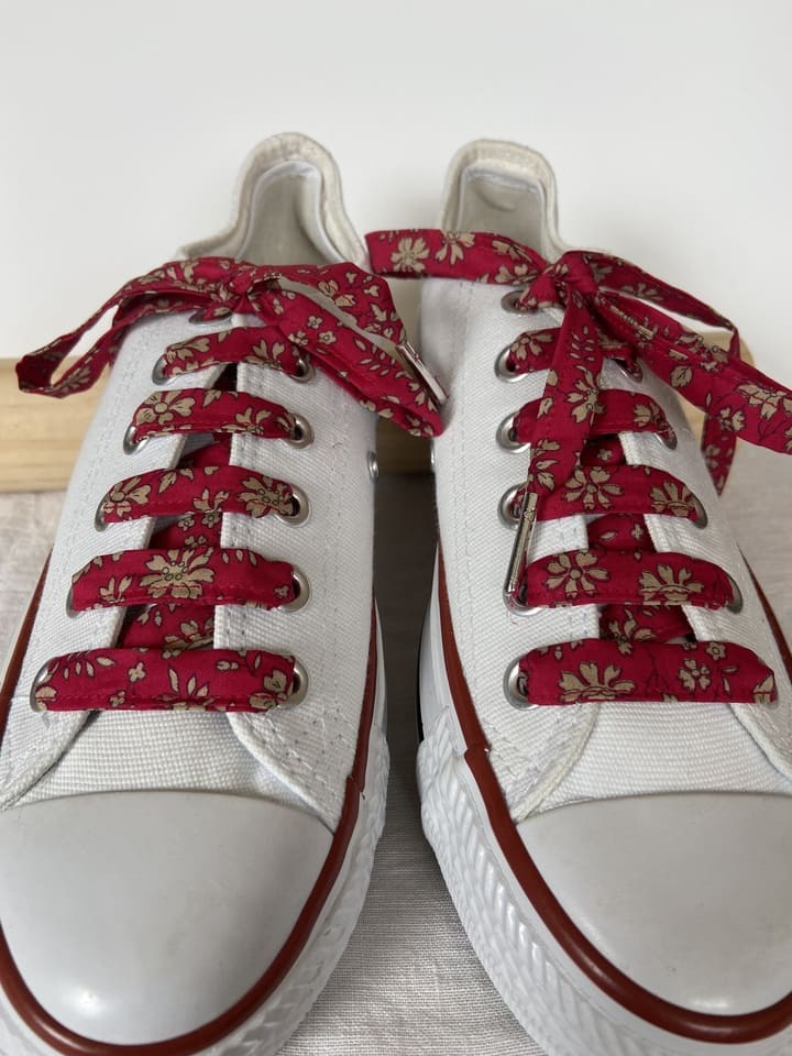 Offrez un nouveau souffle à vos chaussures grâce à nos lacets en tissu Liberty Capel Rubis Bordeaux – longueur 120 cm. Fabriqués à la main en France avec du véritable tissu Liberty of London, ces lacets allient élégance intemporelle, originalité et finition artisanale.