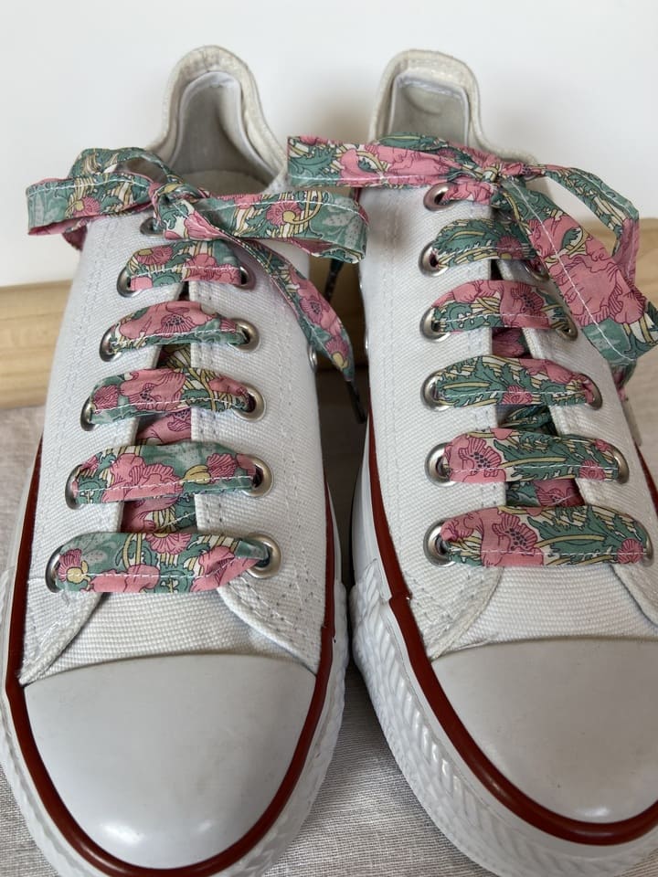 Offrez un nouveau souffle à vos chaussures grâce à nos lacets en tissu Liberty Clementina– longueur 120 cm. Fabriqués à la main en France avec du véritable tissu Liberty of London, ces lacets allient élégance intemporelle, originalité et finition artisanale.
